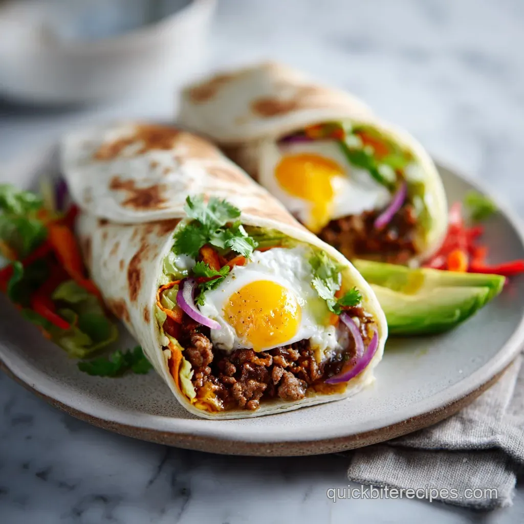 - Flavor/Texture Hook: Savory sausage with velvety eggs and a toasted, chewy wrap