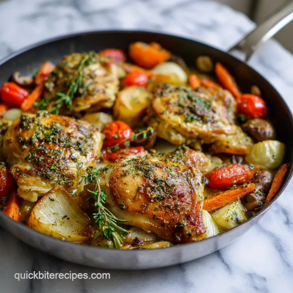 Discover the ultimate weeknight meal with our simple yet spectacular Quick One Pan Roasted Chicken and Veggies with Garlic and Herbs. This dish is my go to when the fridge looks a bit bare and my energy levels are even lower, but I still want something that feels like a real, home cooked victory.